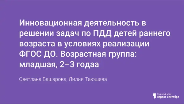 Инновационная деятельность в решении задач по ПДД детей раннего возраста в условиях реализации ФГОС ДО. Возрастная группа: младшая, 2–3 годаа