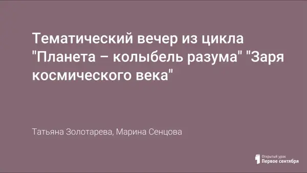 Тематический вечер из цикла "Планета – колыбель разума" "Заря космического века"