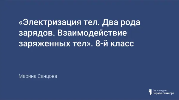 Урок дает представление о понятиях «наэлектризованное тело», «электризация», «электрический заряд», условиях возникновения и передачи заряда, видах зарядов и поведении заряженных тел.
