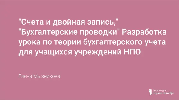В своем уроке автор отводит много времени на отражение на счетах бухгалтерского учета хозяйственных операций, приводит примеры обоснований бухгалтерских проводок, а также составляет конспект-таблицу, практические задания, тесты и контрольные вопросы, позволяющие быстро понять и запомнить тему.