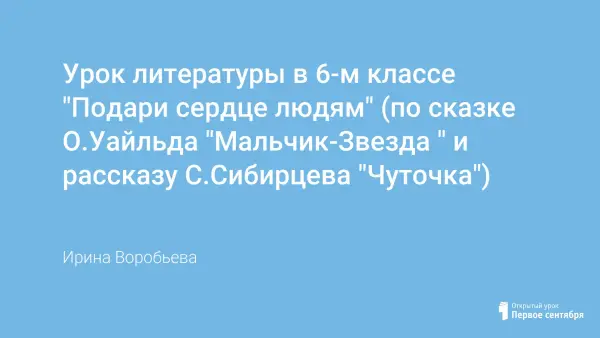 Урок литературы в 6-м классе "Подари сердце людям" (по сказке О.Уайльда "Мальчик-Звезда " и рассказу С.Сибирцева "Чуточка")