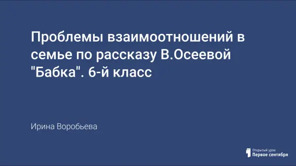 Проблемы взаимоотношений в семье по рассказу В.Осеевой "Бабка". 6-й класс