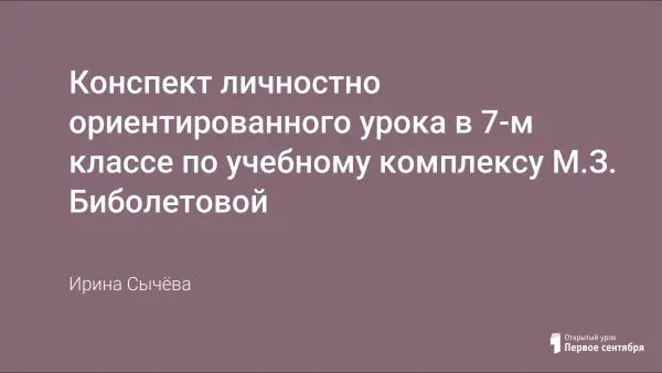 Конспект личностно ориентированного урока в 7-м классе по учебному комплексу М.З. Биболетовой