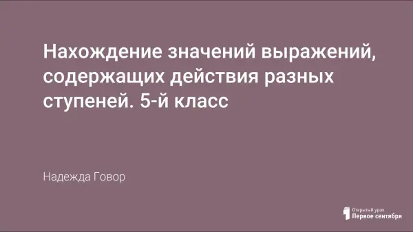 Урок закрепляет навыки нахождения значений выражений, содержащих действия I-й и II-й ступеней. В ходе урока совершенствуются вычислительные навыки учащихся, а также навыки рациональных приемов вычислений.