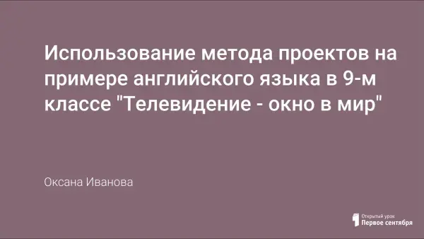 Урок в 9-м классе по теме “Television – a look into the world” является итоговой проектной работой учащихся в форме ток-шоу. В ходе работы над проектом учащиеся самостоятельно находили информацию из различных источников, делали социальный опрос учащихся 9–11-х классов, а также готовились к обсуждению проблемы в рамках ток-шоу. На этапе тренировки учащиеся освоили необходимый грамматический и лексический материал по данной теме.
