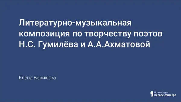 Литературно-музыкальная композиция знакомит с основными этапами жизни и творчества поэтов Н.С. Гумилёва и А.А. Ахматовой, помогает понять атмосферу Cеребряного века русской поэзии. Данная разработка рекомендуется для внеклассной работы: музыкально-поэтических вечеров, литературных салонов и т.д.