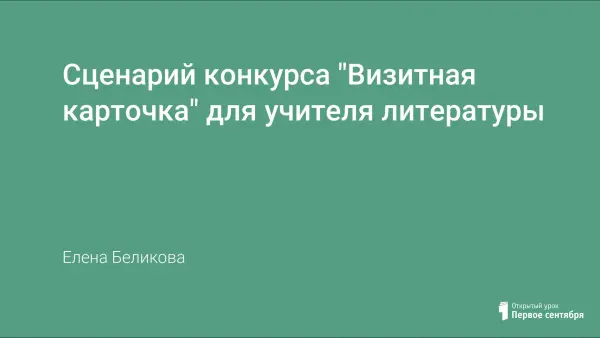 Конкурсы профессионального мастерства среди педагогов стали традиционными. Данная работа представляет собой сценарий «Визитной карточки» учителя литературы. В театрализованной форме литературные герои из произведений Пушкина, которых играют ученики школы, пытаются помочь учителю рассказать о себе, семье, любимой работе. К сценарию прилагается видеоматериал.