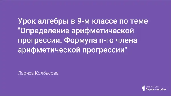 Урок предназначен для учащихся 9-х классов. Цель урока - формирование понятия арифметической прогрессии, познакомить учащихся с формулой n-члена арифметической прогрессии, формирование умений применять формулу n-го члена арифметической прогрессии в простейших ситуациях.