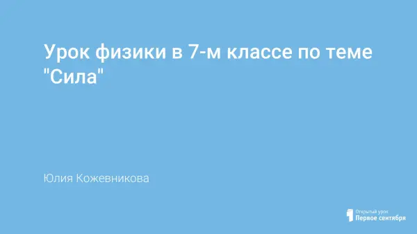 Урок проводится в компьютерном классе с использованием СD диска Физика 7 Кирилла и Мефодия. Повторяя тему плотность при решении индивидуальных и групповых заданий, обучающиеся приходят к теме урока "Сила". Работают под руководством учителя с презентацией урока и знакомятся с понятием сила тяжести, равнодействующая сила, закон всемирного тяготения. В конце занятия выполняют тест.