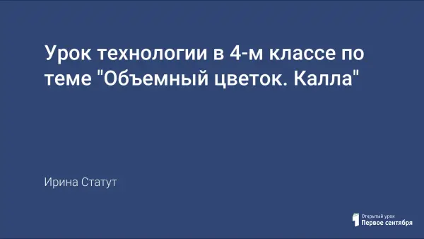 На данном уроке дети знакомятся с историей цветка каллы; учатся делать объемный цветок из хозяйственной салфетки. В процессе работы развивается творческий подход к изготовлению изделия, мелкая моторика рук, глазомер, эстетический вкус.