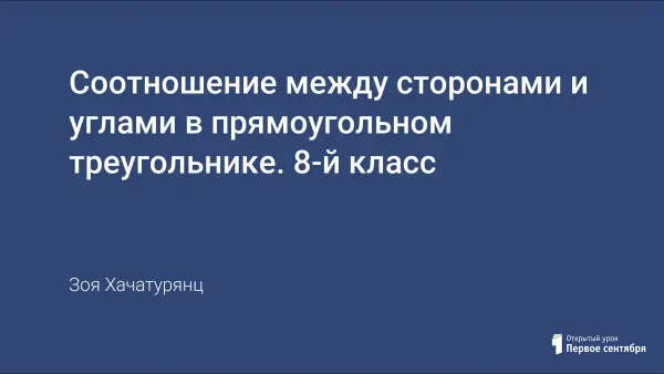 Представленный урок в 8-м классе является первым по теме «Соотношение между сторонами и углами в прямоугольном треугольнике». На уроке вводятся понятия синуса, тангенса, повторяется определение косинуса острого угла в прямоугольном треугольнике. Подобранные задачи призваны доказать ученикам необходимость получения знаний по математике для решения конкретных практических задач.