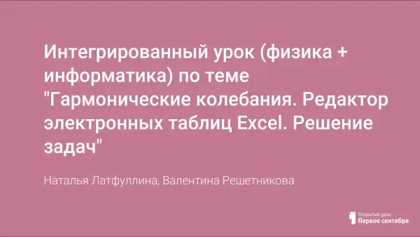Интегрированный урок (физика + информатика) по теме "Гармонические колебания. Редактор электронных таблиц Excel. Решение задач"