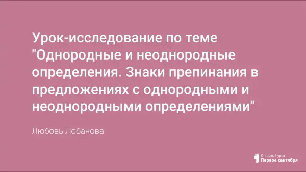 Урок по теме "Однородные и неоднородные определения. Знаки препинания в предложениях с однородными и неоднородными определениями" проводился в 8-м классе. Данный урок - это урок-исследование. На таком уроке учащиеся самостоятельно получают новые знания, а роль учителя является косвенной.