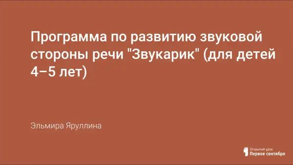 Программа "Звукарик" предназначена логопедам, воспитателям ДОУ для работы с детьми 4-5 лет.