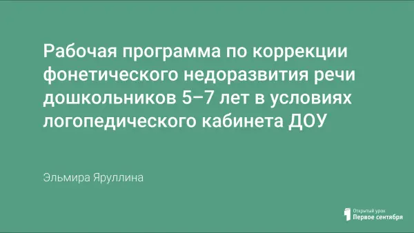 Данная рабочая программа рекомендована учителям-логопедам, работающим в условиях логопункта и логопедического кабинета в дошкольных образовательных учреждениях.
