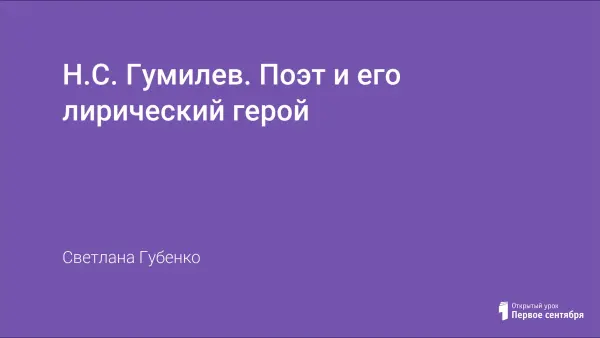 По программе А.Г. Кутузова первая встреча учащихся с поэтом происходит в 7-м классе. Это первый урок. Его цель - познакомить учащихся с личностью поэта, сформировать читательский интерес к творчеству Н.Гумилёва, показать неразрывную связь поэта и его лирического героя, чтобы они прониклись романтикой странствий и экзотикой художественного мира, почувствовали неповторимость Гумилева.