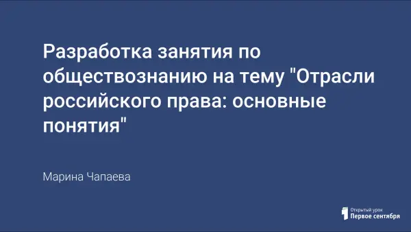Предложенное занятие - промежуточное в теме "Политическая жизнь современного общества". В теме занятия выделяется шесть блоков, две отрасли права были заданы в опережающем домашнем задании двум учащимся, остальные получили задание по этим же отраслям подготовить вопросы. На занятии студенты вступают в дискуссию.