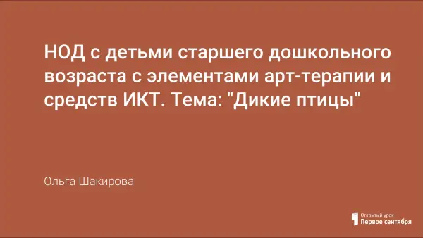 Конспект непосредственно образовательной деятельности разработан с учетом ФГОС ДО и содержит практический материал для работы с детьми старшего дошкольного возраста по лексической теме «Дикие птицы». В процессе НОД решаются задачи нескольких образовательных областей, применяются средства ИКТ и элементы арт-терапии.