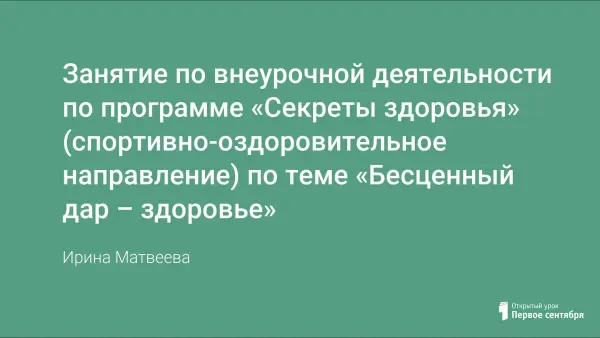 Цель занятия: повторить основные компоненты здорового состояния человека; расширять представления о здоровье, как одной из главных ценностей человеческой жизни; развивать логическое мышление, внимание; воспитывать бережное отношение к своему здоровью.