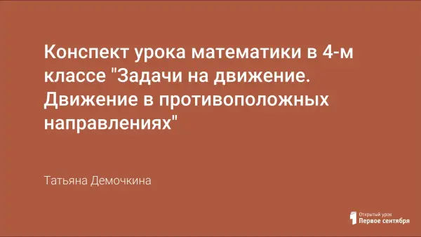 Конспект урока математики в 4-м классе "Задачи на движение. Движение в противоположных направлениях"