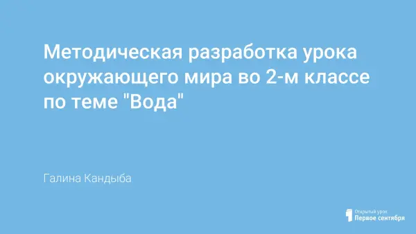 Цели: дать представление о свойствах воды, о различных состояниях воды и видах водоемов. Учить наблюдать за изменениями в окружающем мире, видеть красоту природы. Воспитывать бережное отношение к природе и любовь к искусству.