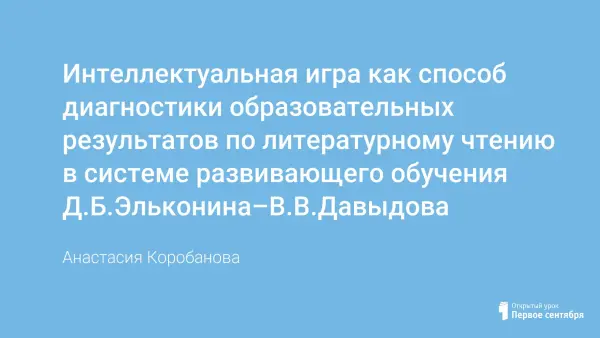 В статье представлен один из методов диагностики образовательных результатов по литературному чтению в системе развивающего обучения Д.Б.Эльконина–В.В.Давыдова – интеллектуальная игра. Нами выделены ключевые понятия, предметные и метапредметные результаты, которые можно диагностировать, представлены примеры заданий и сделаны соответствующие выводы.