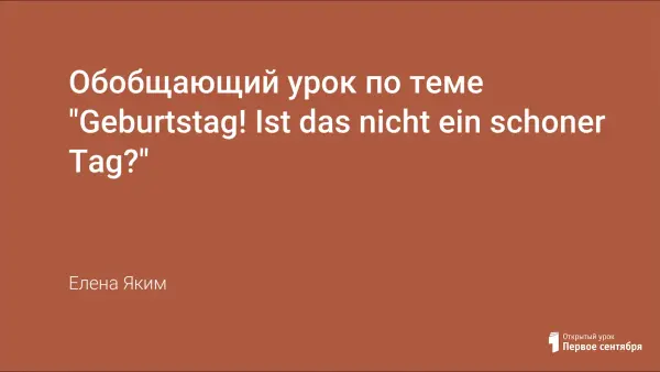 Урок - смотр знаний предлагается провести в форме празднования дня рождения одноклассника. Работа на уроке направлена на развитие коммуникативных способностей учащихся. Целью урока является активизация лексики по данной теме, совершенствование навыков аудирования, чтения и письма.