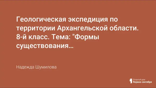 Урок требует хорошо организованного подготовительного этапа. Под руководством учителя химии участники экспедиции систематизировали и углубили знания на основе межпредметных связей, развили умения и навыки самостоятельной работы с научно-популярной литературой, учащиеся рассмотрели минералы, изучили элементарный состав полезных ископаемых Архангельской области.