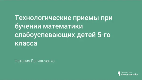 Обучение математике является фундаментом для формирования средств умственной деятельности: у школьников формируются умения проводить анализ, сравнение, классификацию объектов, устанавливать причинно-следственные связи, закономерности, составлять логические цепочки. Изучая математику, они учатся определённым обобщённым знаниям и способам действий. Универсальные математические способы познания помогают в целостном восприятии мира, дают возможности в выстраивании модели его отдельных процессов и явлений, а также являются фундаментом в формировании универсальных учебных действий. Универсальные учебные действия гарантируют освоение предметных знаний и интеллектуальное развитие учащихся, формируют навыки самостоятельного поиска и усвоения новой информации, новых знаний и приемов, что является основой умения учиться. Не все учащиеся приходят в среднее звено хорошо подготовленными. Существует много причин. Одна из них – речевые отклонения. В своей работе предлагаю технологические приемы обучения математике таких детей.