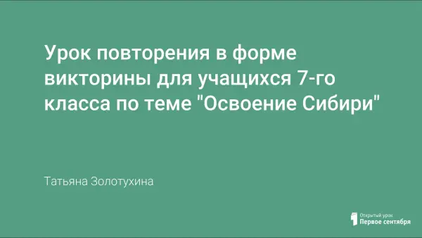Данный урок разработан для итогового повторения, образовательные задачи которого заключаются в повторении, закреплении и углублении знаний по курсу «История Сибири», являющимся дополнительным компонентом к курсу отечественной истории. Урок проводится в форме игры-викторины. Представленные материалы включают все необходимые для проведения урока приложения.