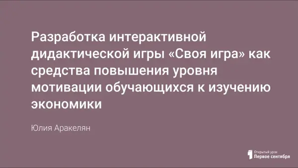 Необходимо сделать уроки экономики более интересными и занимательными. Одним из средств повышения уровня мотивации становится интерактивная игра, направленная на приобретение школьниками среднего звена системных экономических знаний и основ экономической культуры, обеспечивающих формирование экономического мышления современного типа, посредством внедрения ИКТ в образовательный процесс. В данном материале приведены примеры занятий – интерактивных игр, разработанных на основе телевизионной передачи «Своя игра».