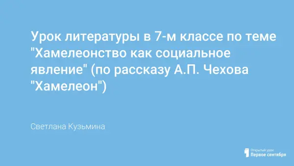 На примере рассказа "Хамелеон" выявляются стилевые особенности юмористических рассказов А.П. Чехова; расширяются литературоведческие понятия; формируется нравственная позиция учащихся. Урок сопровождается презентацией и аудиозаписью рассказа.
