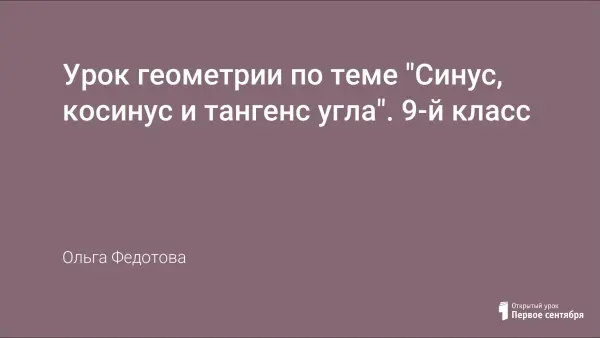 Цель урока - ввести понятие синуса, косинуса и тангенса угла от 0° до 180°. Вывести основное тригонометрическое тождество и формулы для вычисления координат точки. Рассмотреть формулы приведения.