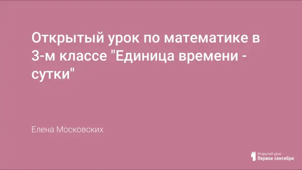 В процессе решения практических задач у учащихся складывается представление о сутках как единице измерения времени. Урок можно использовать при изучении темы "Единица времени - сутки" в любой программе и системе обучения. Все этапы урока связаны друг с другом. Каждый предыдущий этап плавно переходит в последующий. Используются разнообразные формы работы: фронтальная, дифференцированная, групповая, индивидуальная.