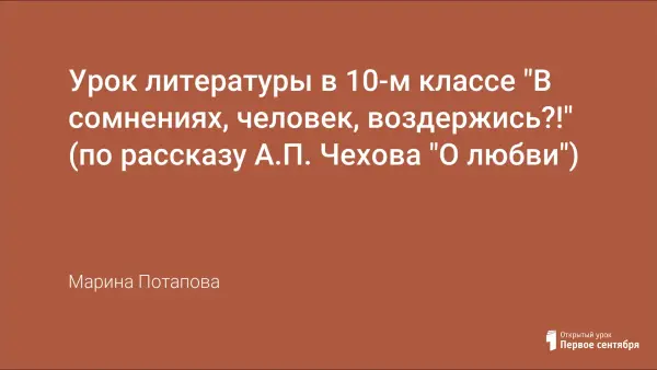 Урок литературы в 10-м классе "В сомнениях, человек, воздержись?!" (по рассказу А.П. Чехова "О любви")