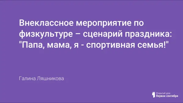 Внеклассное мероприятие по физкультуре – сценарий праздника: "Папа, мама, я - спортивная семья!"