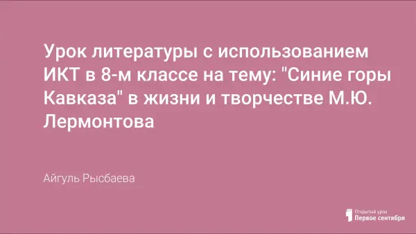 Урок-исследование по русской литературе с применением ИКТ. Цель урока: изучение биографии Лермонтова в период его пребывания на Кавказе. Исследуя биографию великого поэта, учащиеся развивают навык анализа текста, творческие способности, чувство красоты. Воспитывается любовь к чтению, литературе, толерантное отношение к людям.