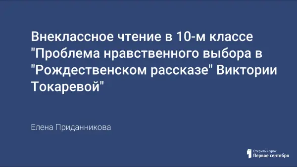 Урок знакомит с произведением современной писательницы Виктории Токаревой «Рождественский рассказ». Учащиеся через прием «чтение с остановками», анализируют произведение, определяют нравственные проблемы рассказа. Содержание урока способствует формированию личностной позиции старшеклассников.