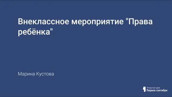 Внеклассное мероприятие посвящено знакомству с основными положениями Конвенции о правах ребенка, с историей ее создания, рассмотрены права ребенка в нашей стране. Затем разбираются конкретные ситуации. Вопросы викторины позволяют закрепить