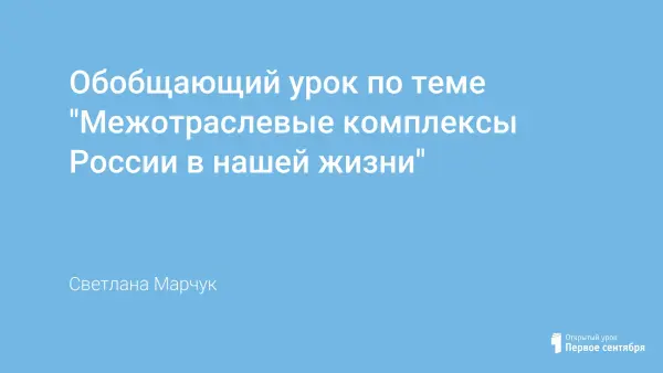 Урок разработан с целью контроля знаний и умений по теме "Важнейшие межотраслевые комплексы". Блиц-опрос проходит в виде фронтального опроса учеников. Затем идет проверка номенклатуры и изученного материала по определенным комплексам (я выбрала комплексы, по которым у учеников были затруднения), на этом этапе учащиеся работают в парах с использованием карты. Ведется индивидуальная работа - географический диктант (этап подготовки учеников к ГИА части А).