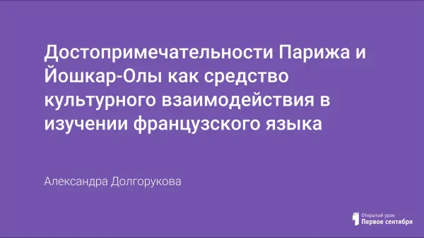 В статье показано сравнение достопримечательностей Парижа и Йошкар-Олы, как показатель культурного взаимодействия в изучении французского языка.