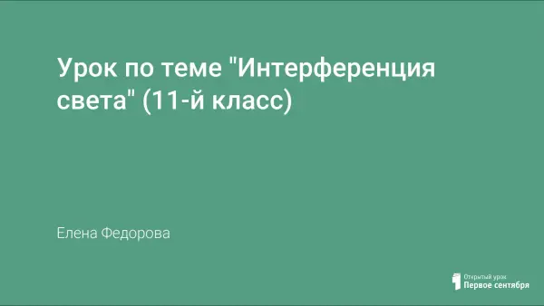 В ходе урока учитель демонстрирует опыты по наблюдению интерференции света. Учащиеся учатся объяснять явления природы его на основе: окрашивание мыльных пузырей, нефтяных пятен на поверхности воды, крыльев стрекоз, поверхности лазерных дисков. На уроке используются элементы проблемного обучения.