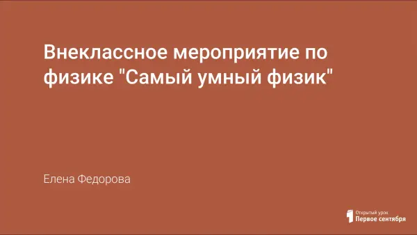 Внеклассное мероприятие с презентацией проводится на неделе физики или как итоговое в конце учебного года для учащихся 10‒11-х классов. Повторяет финальный тур телевизионной игры «Самый умный».