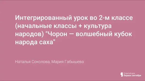 Интегрированный урок во 2-м классе (начальные классы + культура народов) "Чорон — волшебный кубок народа саха"