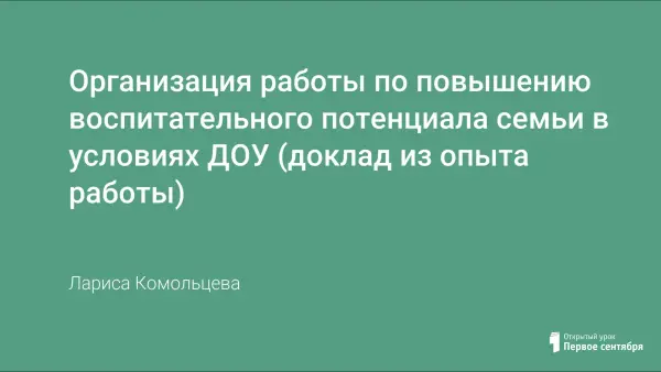 Дошкольная педагогика рассматривает семью как субъект воспитательной деятельности. Для успешного выполнения воспитательных функций, семья должна обладать определенным воспитательным потенциалом, понятие которого раскрывается в представленной статье. Приводится практический материал взаимодействия с семьями разного уровня воспитательных возможностей.