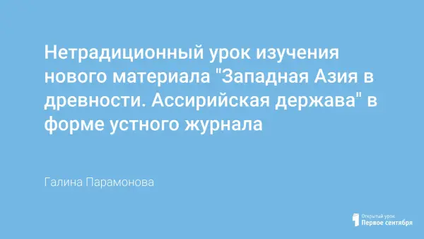 Урок проводится в нестандартной форме устного журнала на последней неделе первой четверти в 5-м классе. Применение интерактивных технологий дает возможность подать материал о возвышении и крушении Ассирийской державы ярко, многогранно; способствует формированию представления учащихся, что история - наука развивающаяся, живая, полная тайн и открытий.