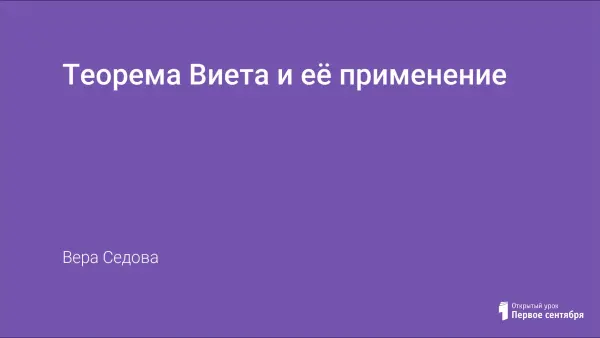 Автор статьи на уроке обобщает и закрепляет навыки решения квадратных уравнений; продолжает развивать устные решения уравнений. Способствует выработке у школьников желания и потребности обобщения изучаемых фактов - развивает самостоятельность и творчество. Обеспечивает закрепление теоремы на интересных примерах.
