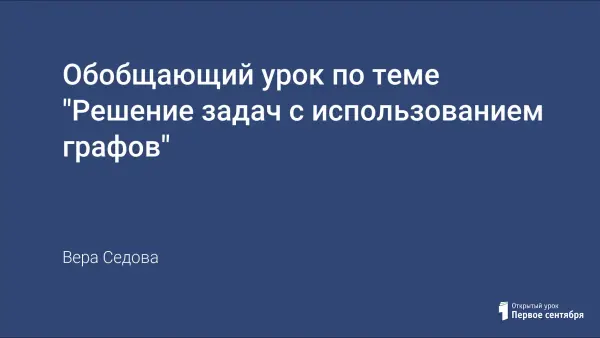 На этом уроке обобщаются и закрепляются навыки решения задач с помощью графов. Интересные устные задания помогают отработке теории графов. Различные по типу задачи способствуют развитию интереса как к предмету, так и к данной теме.