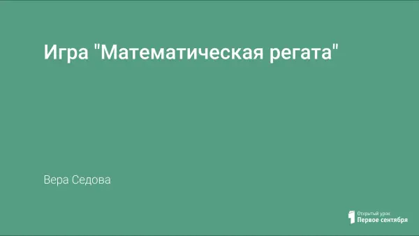 Математические соревнования и игры являются своего рода контролем усвоения учебного материала и психологической подготовкой к будущим олимпиадам. Предлагаю вам опыт проведения игры "Математическая регата". Материал можно использовать для проведения внеклассного мероприятия в рамках недели математики для сборных команд 10–11-х классов.