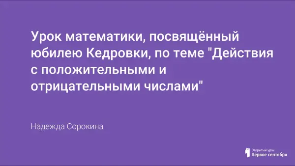 На уроке продолжена работа по формированию навыков действий с положительными и отрицательными числами; углубляются знания учащихся об истории родного края; происходит знакомство со стихами местного поэта. Урок посвящен юбилею образования угольного разреза "Кедровский".